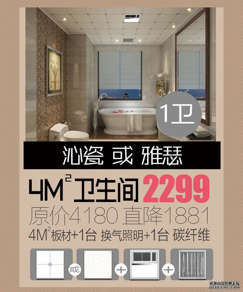 2、健康環(huán)保浴室頂 板材+多功能電器 僅售2299