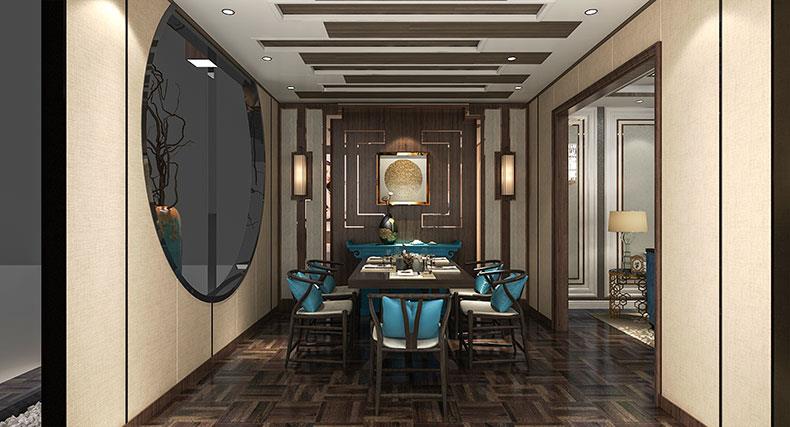 客廳空間所用到的負(fù)離子生態(tài)吊頂板材素絹,具有360°持續(xù)增發(fā)負(fù)氧離子的功能,能產(chǎn)生森林級(jí)別的新鮮空氣,讓您身處客廳也能呼吸到新鮮空氣。此外客廳空間還用到了素琴、中式雕花燈等裝飾材料,以期打造更時(shí)尚的輕奢魅力。