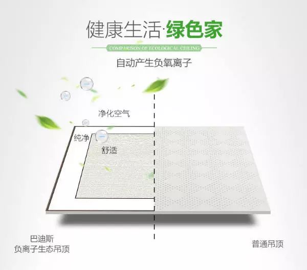 巴迪斯一馬領(lǐng)先,首推的負離子吊頂板材擁有過硬的質(zhì)量,具備隔音、隔熱、防震、保溫等強大功能,是名副其實森林氧吧制造機。